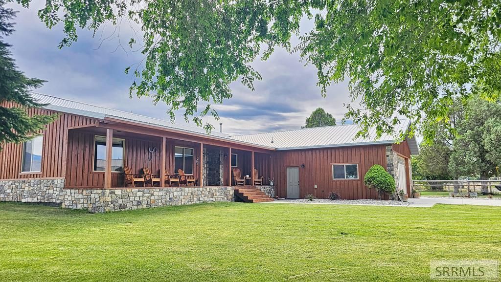 Located approximately 5.5 miles from Salmon, Idaho, this 122.41-acre ranch features three-quarters of a mile of Salmon River frontage, productive farmland, horse-friendly amenities, and sweeping views of Ajax, Copperhead, and Freeman Peaks. The land is equipped with a five-tower pivot, two wheel lines, and flood irrigation, making it well-suited for hay production, grazing, and pasture rotation. The property includes a spacious 4,800 sq ft heated barn with 12 stalls, a tack room, and ample storage, plus a heated 1,152 sq ft workshop, loafing shed, chicken coop, and round pen, providing all the essentials for a fully functional operation. The updated 1,933 sq ft home has 3 bedrooms, 2.5 bathrooms, an open floor plan, and large picture windows to take in the views. The spacious and inviting kitchen showcases granite counters, a large 14-foot island, double ovens, and plenty of cabinets. French doors lead from the kitchen to a generous deck, perfect for relaxing or entertaining family and friends. A well-designed mud and laundry area, complete with a roomy pantry and convenient half bath, provides seamless access to the attached two-car garage. Outdoor enthusiasts will enjoy easy access to hiking, fishing, rafting, hunting, and more in this scenic Idaho setting.
